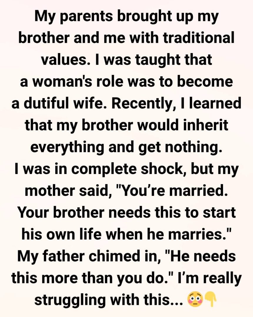 I never expected any sort of inheritance from my parents, as I always believed that whatever they had would be equally shared between my brother and me. But that belief was completely shattered when I stumbled upon their will recently. I was visiting my parents when I found the will in one of their drawers.