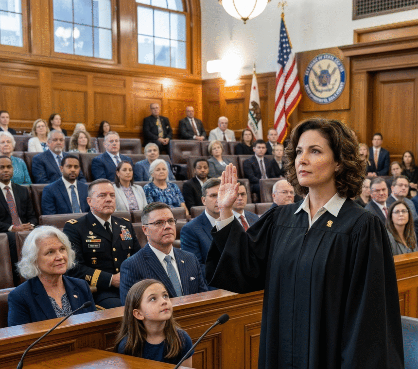 It was a cold December morning in Washington, D.C., the kind where your breath forms small clouds and the marble steps of the federal courthouse gleam with frost. I stood in the waiting room adjusting my new judge’s robe, the weight of it settling across my shoulders like a promise I’d chased for thirty years. Through the tall windows, I could see colleagues arriving, former clients I’d fought for, law students I’d mentored.