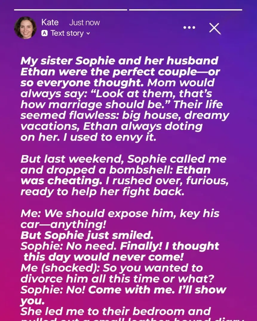 Their life seemed perfect: a big, beautiful house, fancy vacations, and Ethan always doting on Sophie when we were around. I couldn’t help but compare myself to her. I’d think about my own failed relationships and wonder why I couldn’t have what Sophie had.