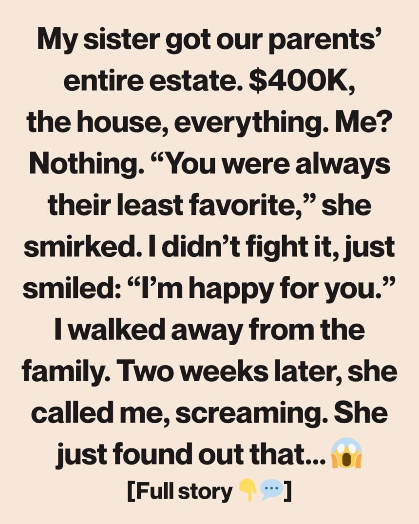The house I grew up in. Four hundred thousand dollars in savings. All of it went to my sister.