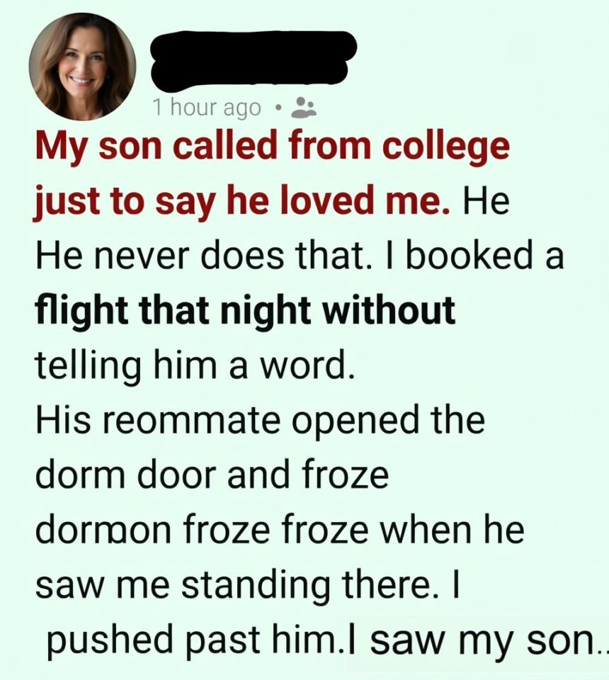 My son called me on an ordinary afternoon, his voice softer than usual, almost fragile in a way I wasn’t used to. He didn’t ask for anything or rush the conversation—he just told me he loved me. It should have felt normal… but instead, it left me uneasy for reasons I couldn’t explain.