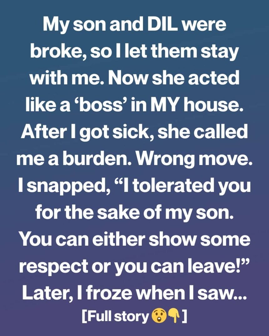 That was the moment something in me broke. “I tolerated you for the sake of my son,” I told her, my voice shaking with anger. “You can either show some respect in my home, or you can leave.”