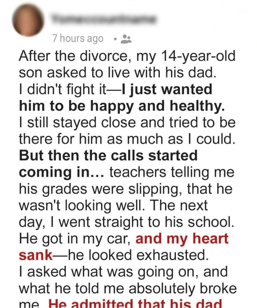 I agreed when Mason, my 14-year-old son, begged to go in with his father following the divorce.