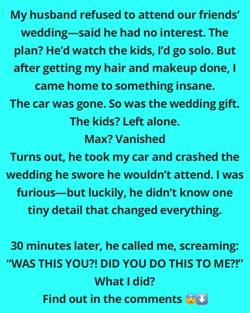 My spouse went to our friends’ wedding without me, leaving our children alone at home, but he overlooked one minor detail.