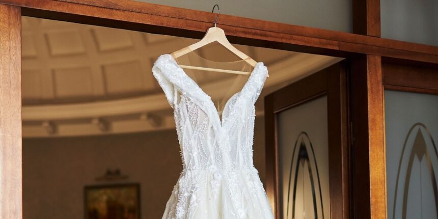 At the very back, zipped into a garment bag, tucked behind coats and scarves — her wedding gown.