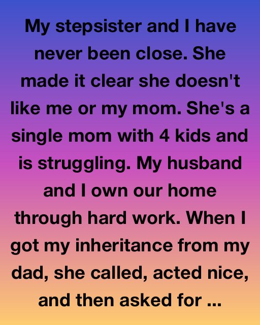 My husband and I own our home through hard work. When I got my inheritance from my dad, she called, acted nice, and then asked for $30,000 to “get back on her feet.”