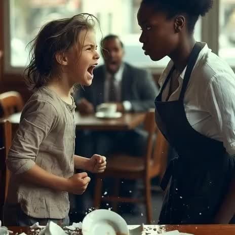 Every customer turned to stare. In the middle of the mess stood a ten-year-old girl, fists clenched, her jaw set tight. Her eyes burned with an intensity that didn’t belong to a child.
