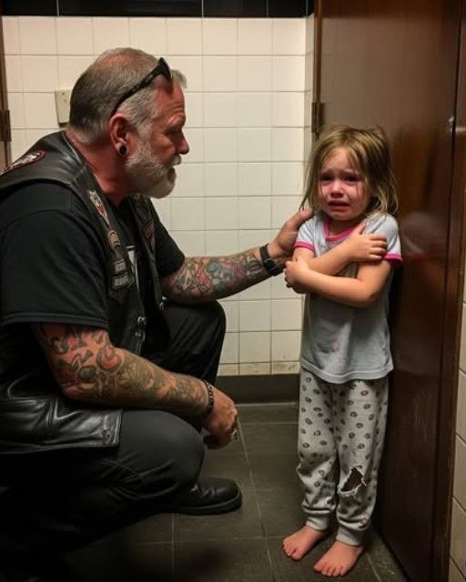 One terrified blue eye peeked out, and when it landed on Mike—his skull tattoos, his leather vest—it started to slam shut again. But the girl hesitated. “You’re scarier than him,” she whispered.
