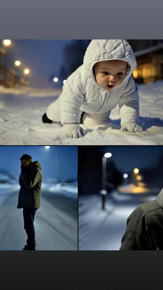 He jumped out of the cab, unable to believe his eyes. There, on the snowy road in the freezing night, a one-year-old baby was crawling in a white jumpsuit. The child wore thin shoes, no hat, no gloves.