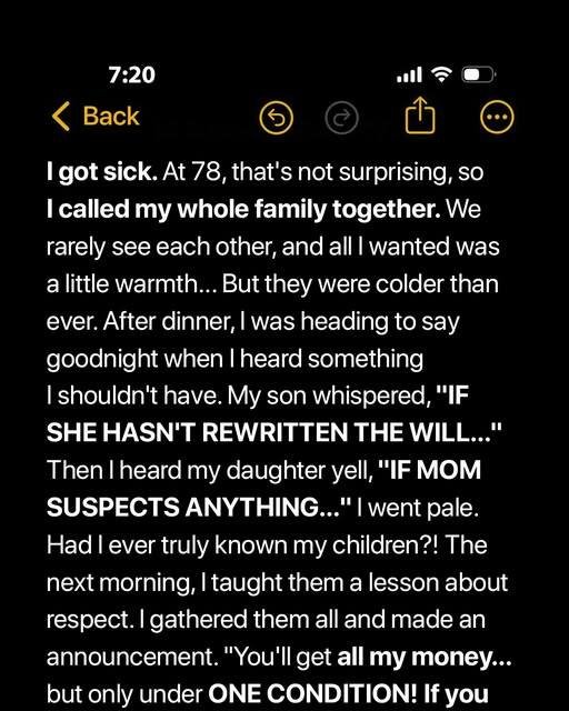 At 78, I wasn’t ready to fade into the background. My children barely visited, my grandchildren were kept from me, and my neighbors thought I was eccentric. So, after a health scare, I pulled my family under one roof with one goal: to remind them who I was—and to test who truly cared.