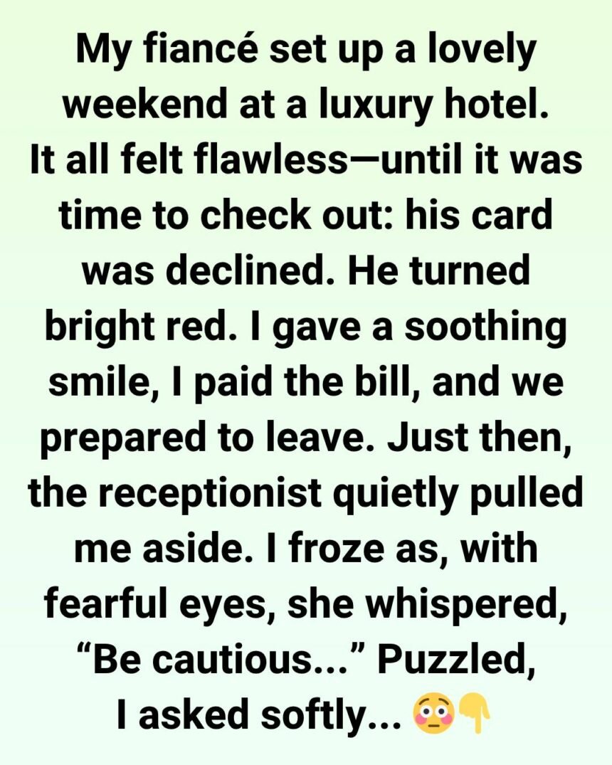 My fiancé had planned what he called a “surprise to remember”—a weekend at a luxury hotel overlooking the ocean. Everything about it felt perfect. Candlelit dinner, spa sessions, champagne waiting in the room… it was the kind of experience you dream about when you believe you’ve found the person you’ll spend forever with.