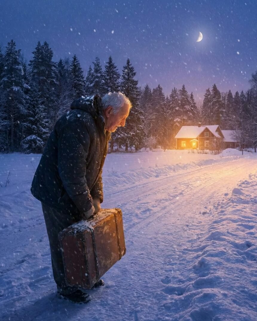 That’s when my headlights caught sight of an elderly man walking slowly along the side of the highway, carrying a worn suitcase. He looked cold, tired, and completely alone. I hesitated, unsure whether to stop, but something about him reminded me of my late grandfather.