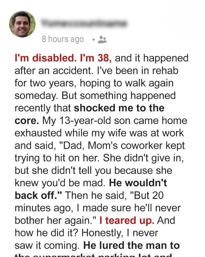 When my 13-year-old son came home looking exhausted and told me he’d “handled” my wife’s persistent coworker who wouldn’t stop hitting on her, I never expected what he’d actually done. What this kid pulled off was so brilliant and devastating that it left me speechless. My name is Tim, and I’m 38 years old.