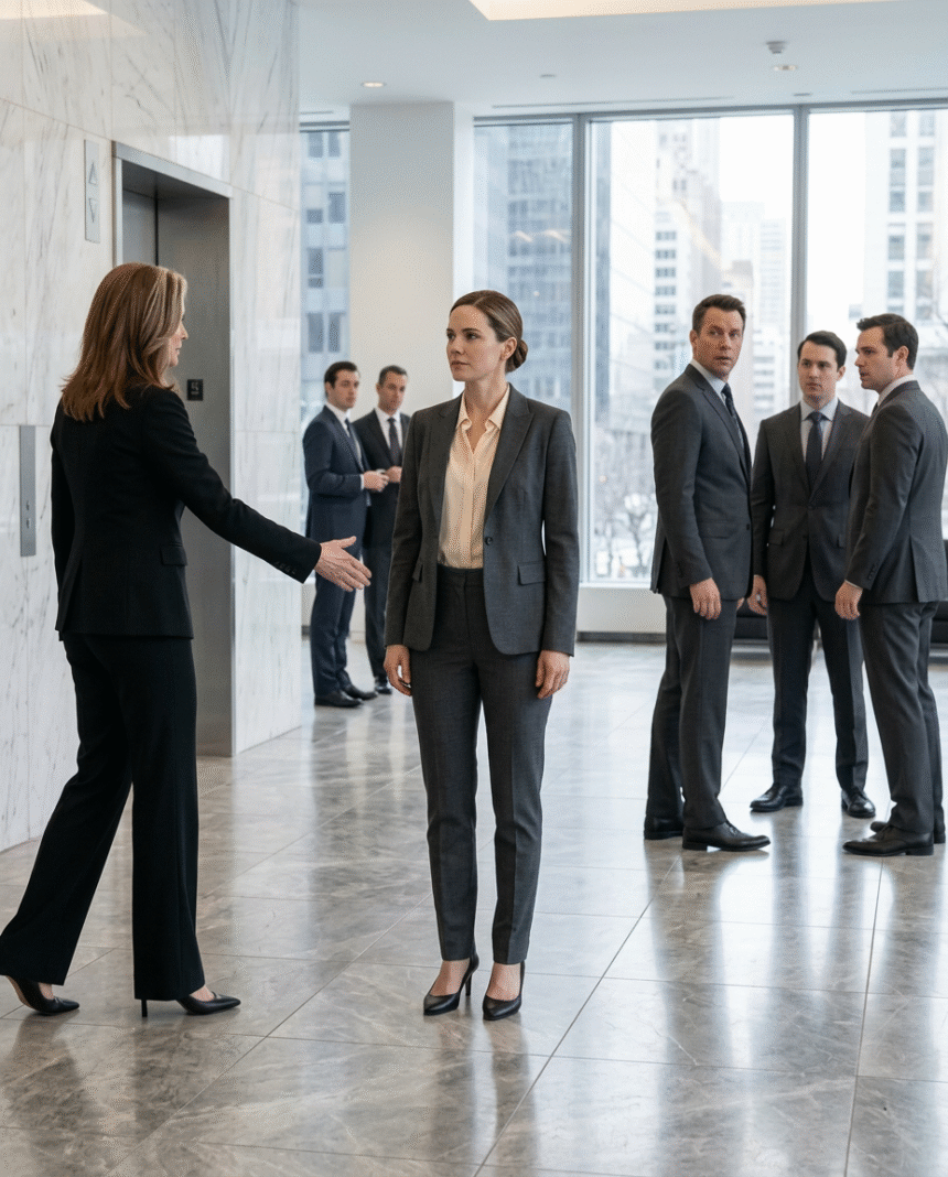 Behind us, the lobby had gone quiet—the kind of silence that falls when people sense a shift in hierarchy and don’t want to miss the exact second it happens.