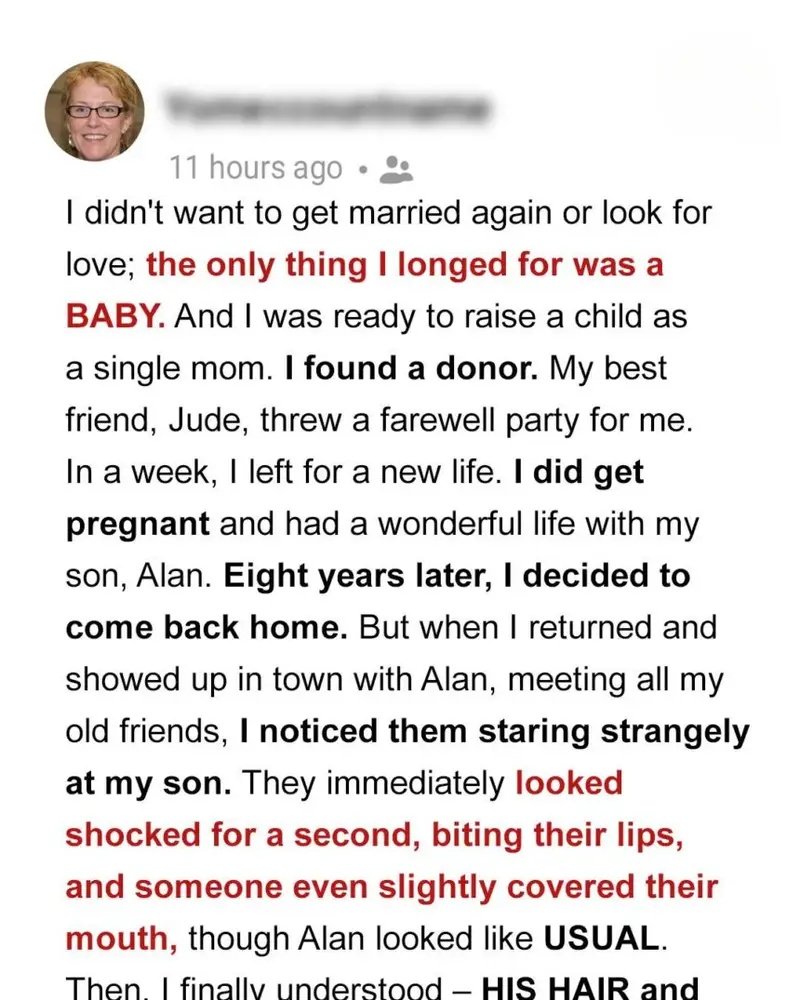 After my divorce, I still dreamed of becoming a mother, even if it meant raising a child on my own. With the help of a donor, I welcomed my son, Alan, into the world. For eight wonderful years, it was just the two of us — a small but happy family, full of love and laughter.