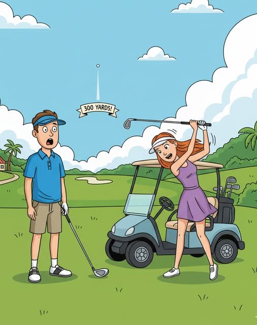 Sam and his wife Rachel were playing golf at the club when she drove a 300-yard tee shot straight down the fairway. Sam said, ‘Wow, I have never seen you play this well before!’