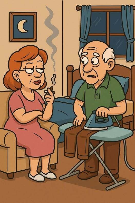 After 37 years of marriage, Edna had just about enough of Harold’s routine: dinner at five, the news at six, grumbling by seven, and asleep by eight — snoring like a broken lawnmower. One steamy summer evening, as the old fan rattled in the corner and the ironing board stood proudly in the middle of their bedroom like an unwanted third wheel, Edna sighed, set down her iron, lit a cigarette, and said with a smirk: