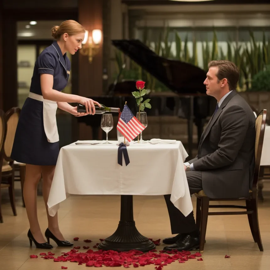 I was assigned to serve him. I brought water, took his order, stayed invisible the way good servers do. Then I saw his wrist, a small tattoo, a red rose with thorns twisted into an infinity symbol.