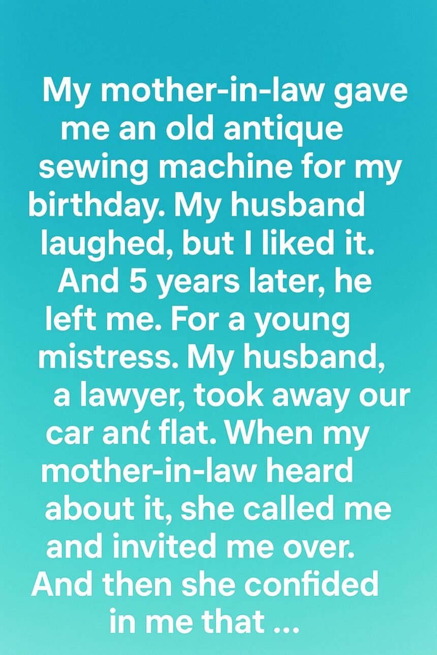 My mother-in-law gave me an old antique sewing machine for my birthday. My husband laughed, but I liked it. And 5 years later, he left me.
