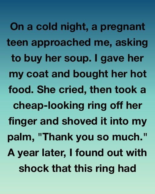 As she ate, she told me her name was Isla. She’d left home, had no safe place to stay, and didn’t trust shelters anymore. When she finished, she pressed a thin ring into my palm, insisting I keep it so I’d remember being kind.