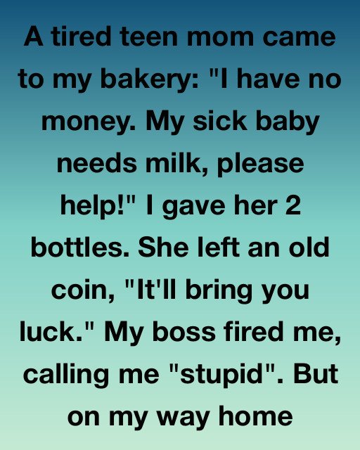 She didn’t have words left, just a shaky nod that broke my heart. Before she turned to leave, she reached into her pocket and pressed something cool and heavy into my palm. She left an old coin, whispered “It’ll bring you luck,” and disappeared into the rain before I could offer her a pastry.