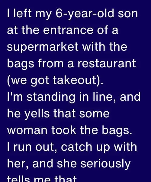 I left my 6-year-old son at the entrance of a supermarket with the bags from a restaurant (we got takeout).