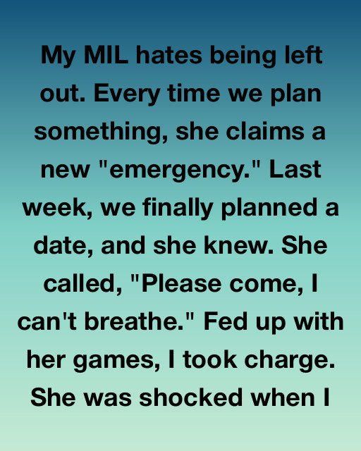 My MIL hates being left out. Every time we plan something, she claims a new “emergency.” Last week, we finally planned a date, and she knew. She called, “Please come, I can’t breathe.” Fed up with her games, I took charge.