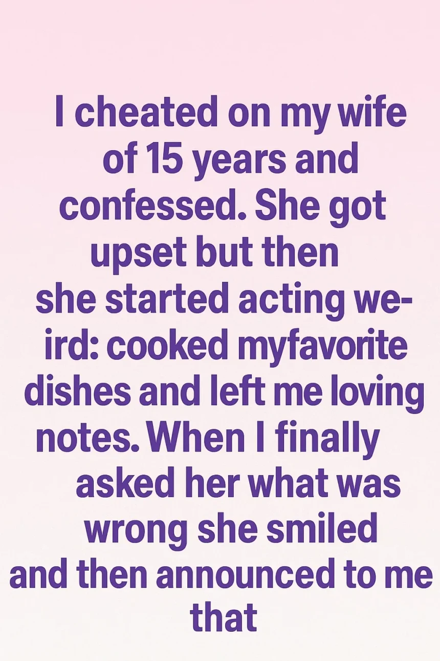I expected rage, silence, or the slow crumble of love, but instead, she grew softer. She began cooking my favorite meals again, left notes with words like “always” and “still,” and smiled in ways that felt almost painful to witness. Her kindness unsettled me more than anger ever could.