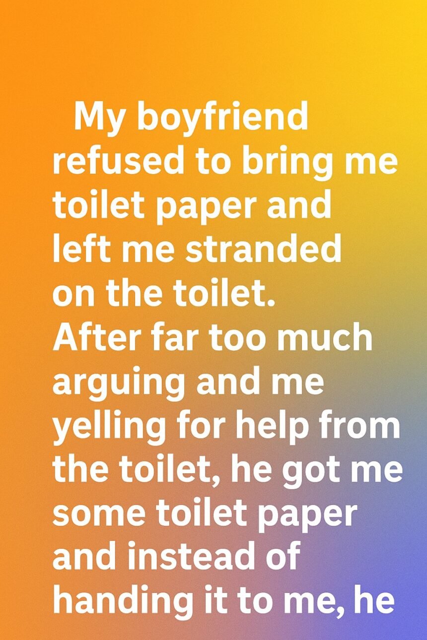 My boyfriend refused to bring me toilet paper and left me stranded on the toilet. After far too much arguing and me yelling for help from the toilet, he got me some toilet paper and instead of handing it to me, he tossed it on the floor with an eye roll, as if helping me in a small, vulnerable moment was somehow an unreasonable request. It wasn’t the situation itself that stung—it was the way he made me feel insignificant over something so simple.