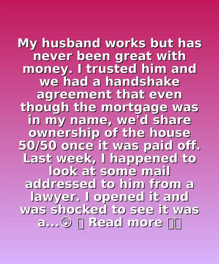 When they purchased their first home, the mortgage was put in Sophia’s name to keep things simple. They had a heartfelt conversation and made a handshake agreement: once the house was paid off, they would share ownership equally. It was built on trust, love, and the belief that they were a team.