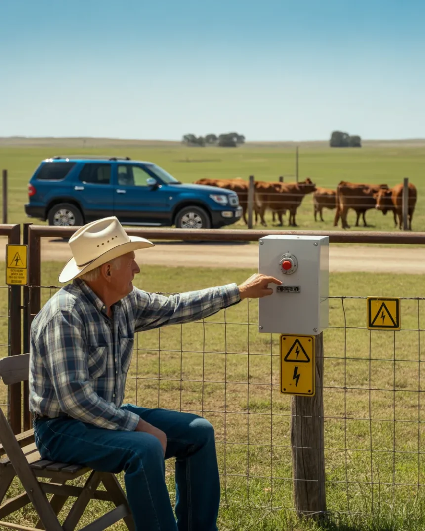 I’d heard the tires before sunrise—a crunch that didn’t belong to any of our neighbors. By the time I stepped outside, he was already in his porch chair, boots planted steady as if he’d been waiting for this particular kind of nonsense his whole life. The SUV was parked so close to the hot wire you could’ve measured the gap with a dime.