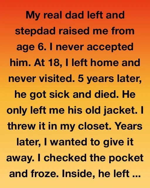 Years later, I wanted to give it away. I checked the pocket and froze. Inside, he left a folded letter with my name written in blocky, uneven handwriting.