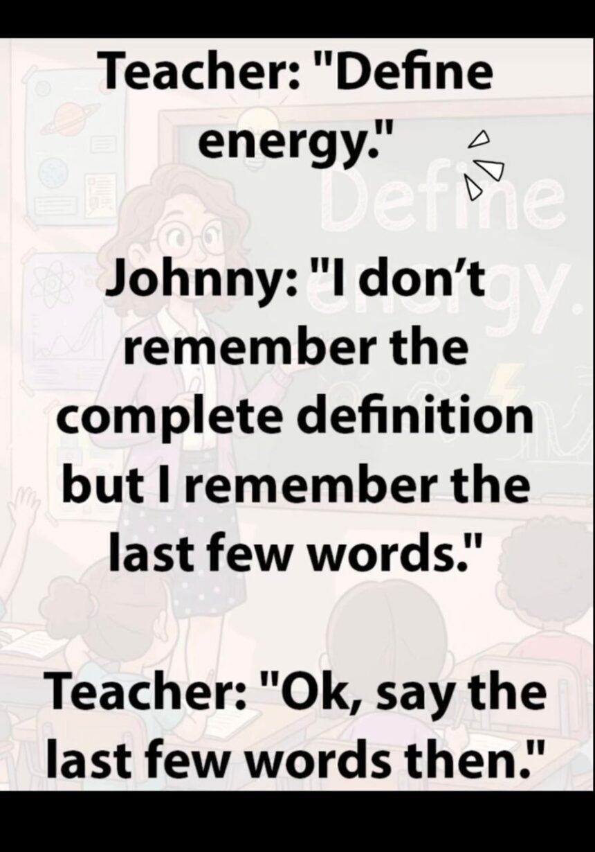 Johnny: “I don’t remember the complete definition but I remember the last few words.”