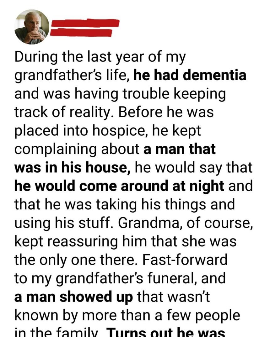He introduced himself as an old friend of my grandmother’s, and he had come to pay his respects. In a small town, it isn’t unusual for acquaintances to drift in and out of funeral homes, offering a handshake, a memory, or a quiet tear. We didn’t think much of it.