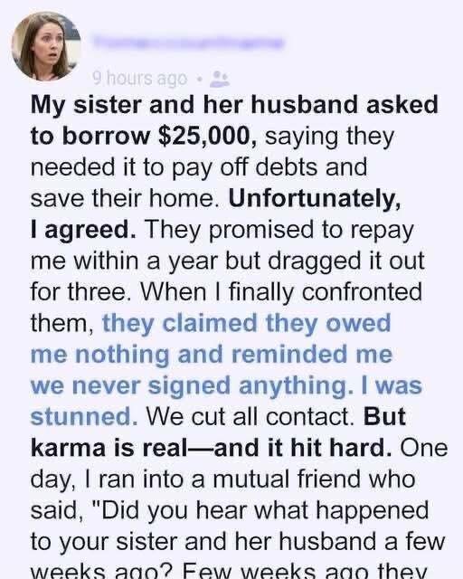 Yet the true devastation wasn’t financial—it was the collapse of trust. In that moment, the narrator realized that the sibling they believed they knew no longer existed, and the silence that followed between them felt heavier than any argument ever could. As the narrator replayed the events—her trembling voice asking for help, the belief that family means protection, and the final sentence that exposed the betrayal—they came to understand that the pain stemmed not from the act itself, but from the breaking of an illusion.