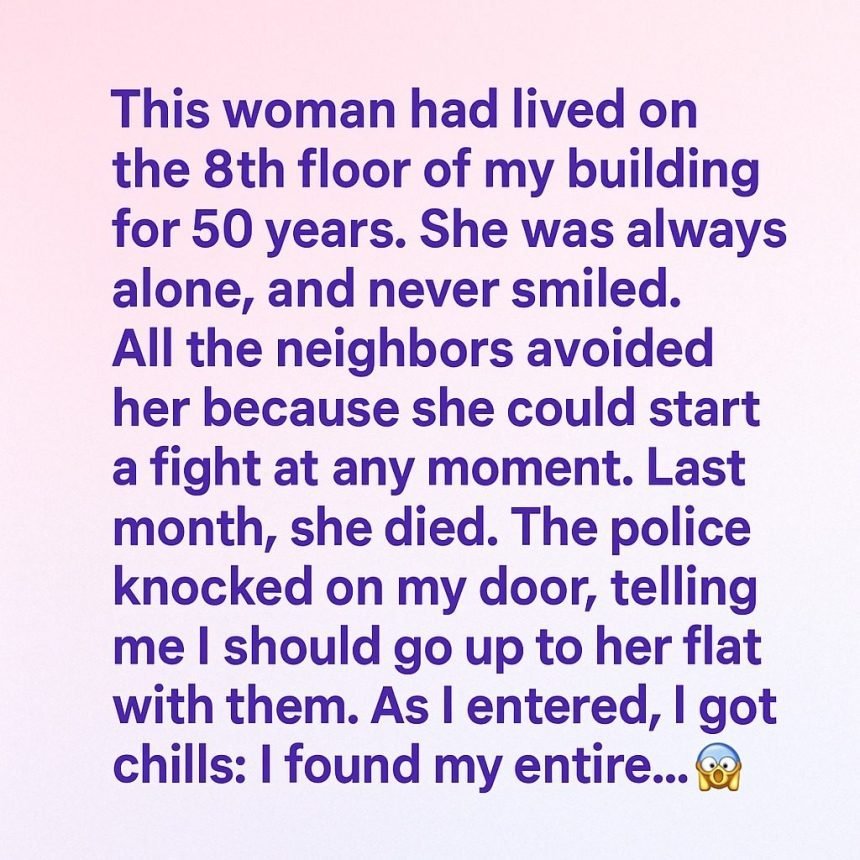 She was always alone, never smiled, and people avoided her. They said she could start a fight at any moment. To us, she was the “angry neighbor” no one wanted to deal with.