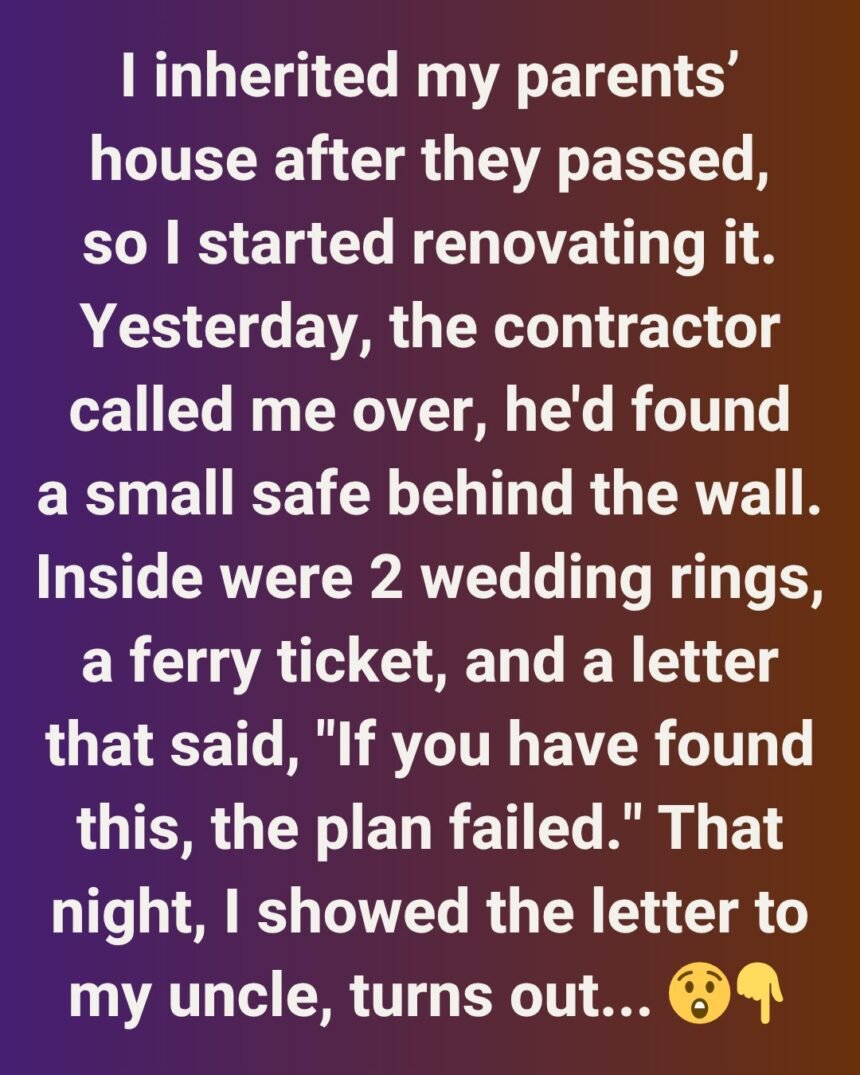 When I walked in, he pointed to a hollow section of wall he’d opened. Inside was a small, dust-covered safe, wedged between the studs as if someone had tucked it away in a hurry. My heart thudded as he handed it to me.