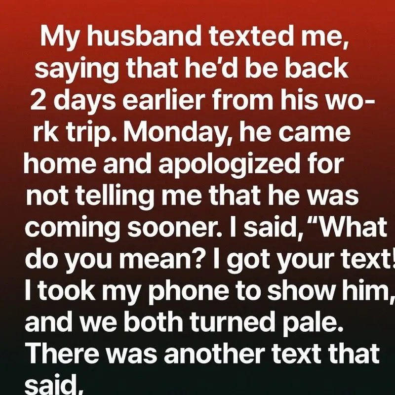 On Sunday afternoon, my phone buzzed. It was a message from my husband:”I’ll be home two days early from the work trip. Can’t wait to see you.”I smiled, feeling both relieved and excited.