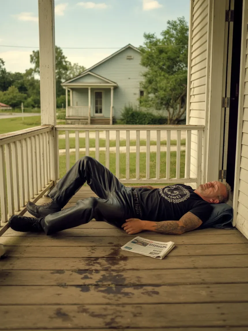 Just before sunrise, still half asleep, I opened my front door to collect the morning newspaper and nearly lost my breath. A large man in worn motorcycle gear lay slumped against my porch, bruised and barely conscious. His jacket was torn, and dried blood marked his gray beard.