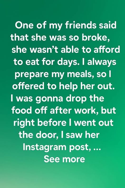 Since I always prepare extra meals at home, I offered to share some with her. I planned to drop off the food after work to make sure she had something to eat. Just as I was about to leave, I opened Instagram for a quick scroll.