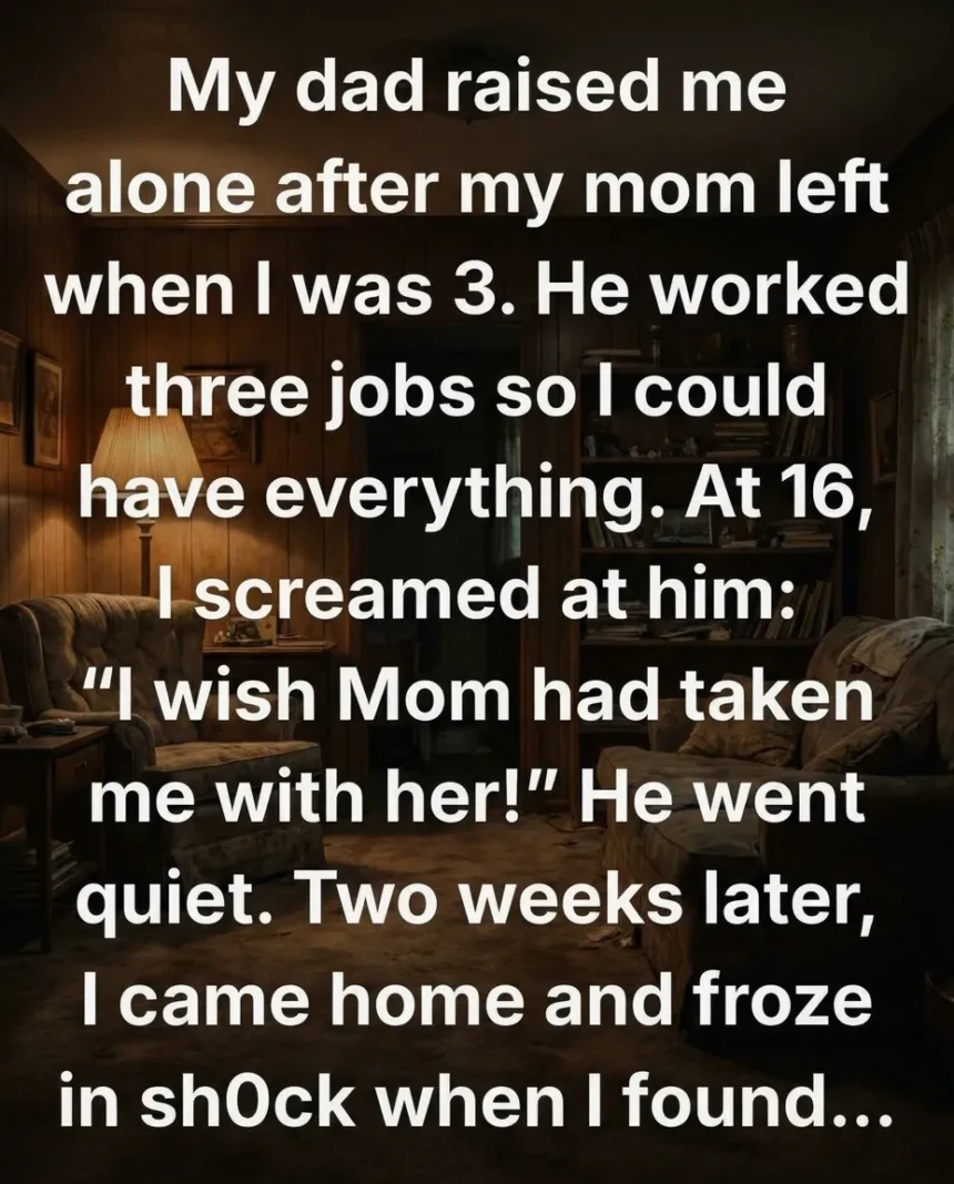 One night, during a fight over something small—my curfew, some rule I thought was unfair—I exploded. I shouted things I can’t take back. The worst of it was, “I wish mom had taken me with her.”He didn’t argue.