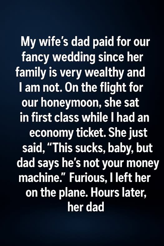 My wife’s dad paid for our fancy wedding since her family is very wealthy and I am not. On the flight for our honeymoon, she sat in first class while I had an economy ticket. At first, I assumed it was a simple mistake or a last-minute booking issue.