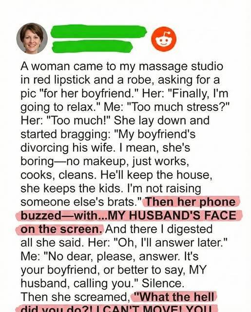 But one ordinary morning, a woman walked into my massage studio and unknowingly set fire to every illusion I had left.