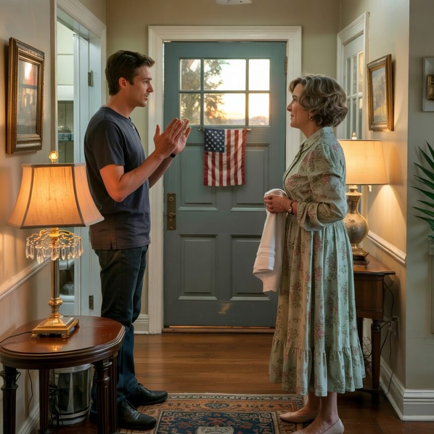 I stayed where I was in the doorway, one hand braced against the trim, the other still holding a folded towel from the basket, using these small domestic gestures to keep myself steady when everything in my world felt like it was tilting dangerously off its axis. The porch light behind the frosted glass door burned with its steady glow—that same light I’d turned on every evening for decades, the light that had welcomed Marcus home from school, from dates, from college. The light that represented stability, home, safety.