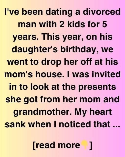 I’ve dated a divorced father of two for five years. This year, we dropped off his kid at his mom’s place for her birthday. I was invited to see her mother and grandmother’s gifts.