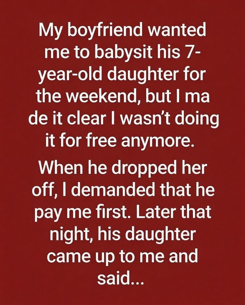 When my boyfriend asked me to babysit his 7-year-old daughter for the weekend, I hesitated. I had looked after her many times before, and while I cared about her deeply, it was beginning to feel less like occasional help and more like an ongoing responsibility. After thinking it over, I decided to be honest.