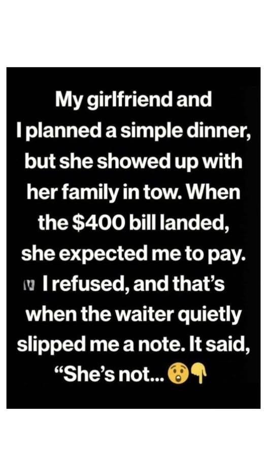 I had imagined the evening as a chance to unwind—a calm dinner, meaningful conversation, and time to reconnect after busy weeks. I arrived early, relaxed and optimistic. That changed when my girlfriend showed up not alone, but with her parents and siblings.