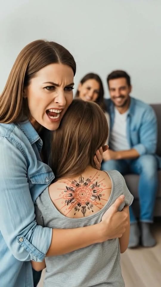 “You call your girlfriend putting these symbols on our nine-year-old daughter dramatic?” I shot back, my voice shaking with rage.