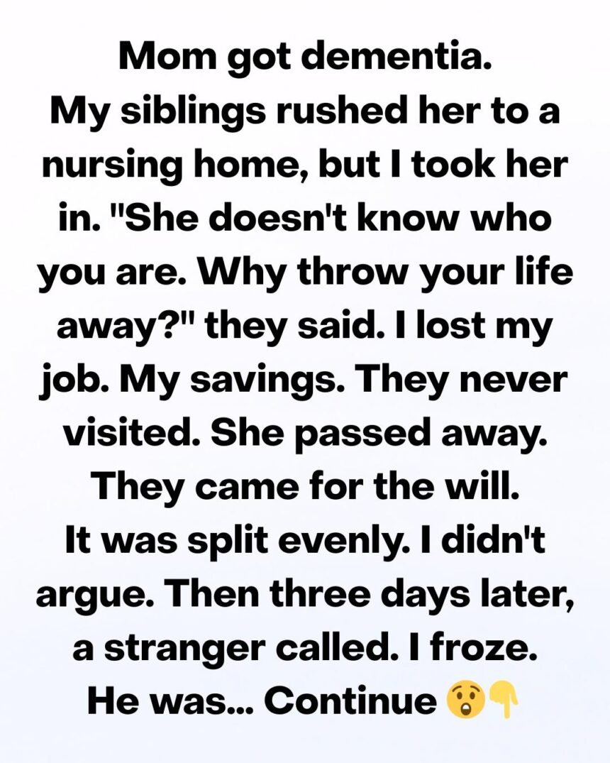 Some days she mistook me for a neighbor, or her sister, or a nurse who hadn’t shown up yet. Other days she smiled and said my name like it was a small miracle. My siblings never visited.
