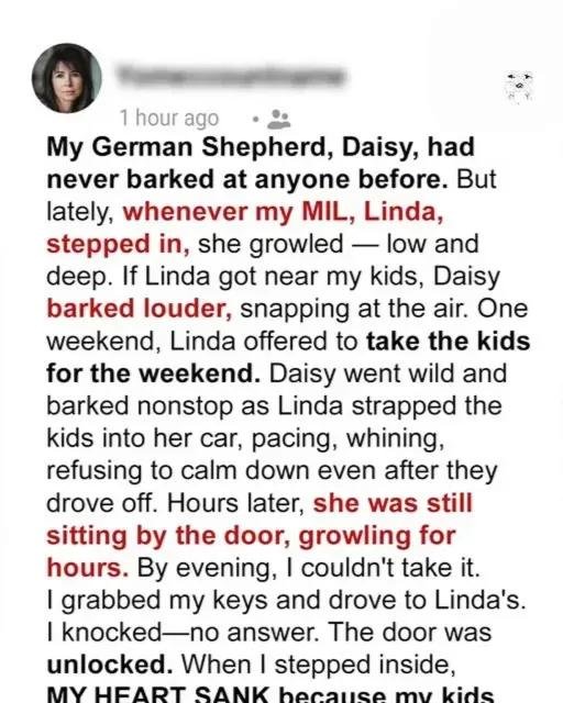 I realized sometimes animals see what we overlook. That night changed everything for me and my family. Daisy, usually calm and protective, had been growling at Linda every visit.